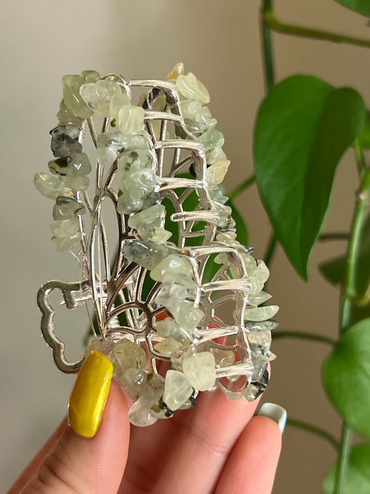 Prehnite With Epidote Fairy Claw Clip - Silver
