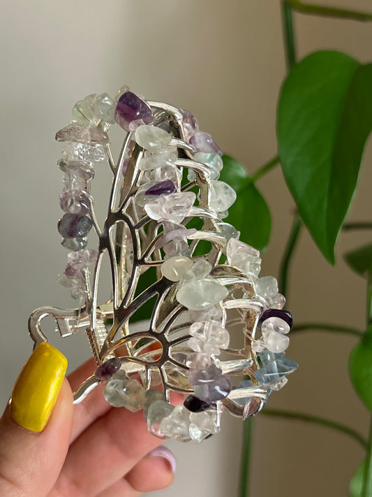 Rainbow Fluorite Fairy Claw Clip - Silver