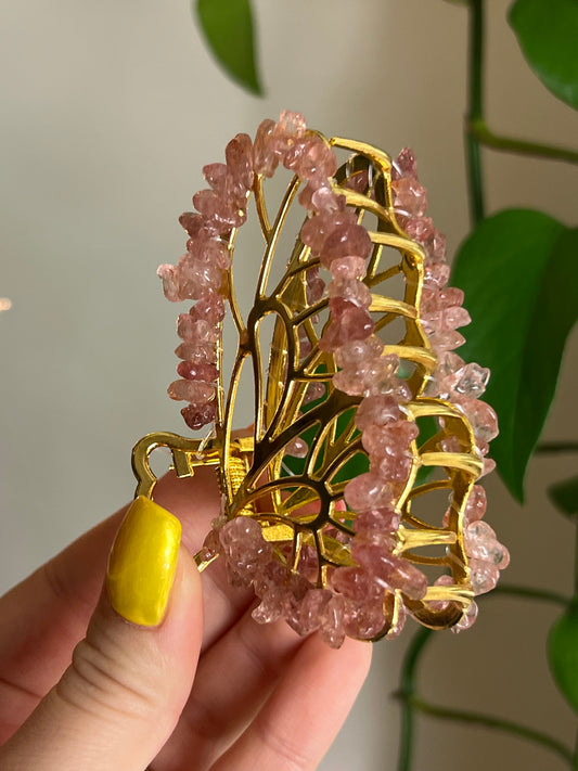 Strawberry Quartz Fairy Claw Clip - Gold