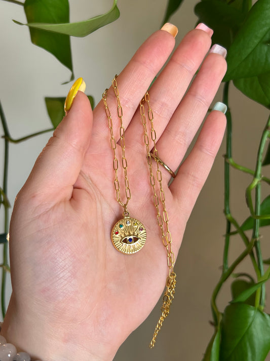 Rainbow Eye Gold Stainless Steel Necklace
