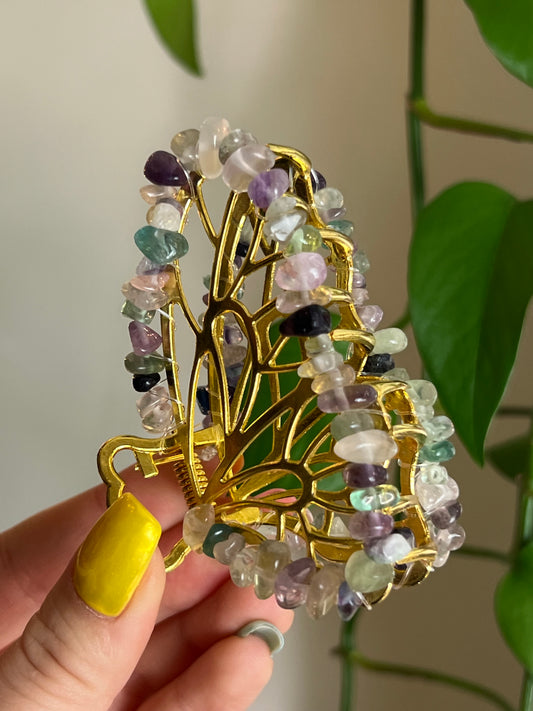 Rainbow Fluorite Fairy Claw Clip - Gold
