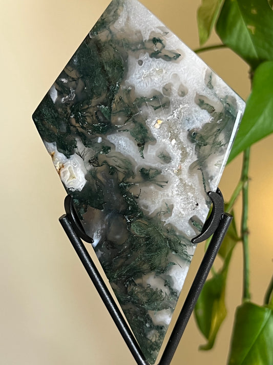 Moss Agate Diamond on Stand