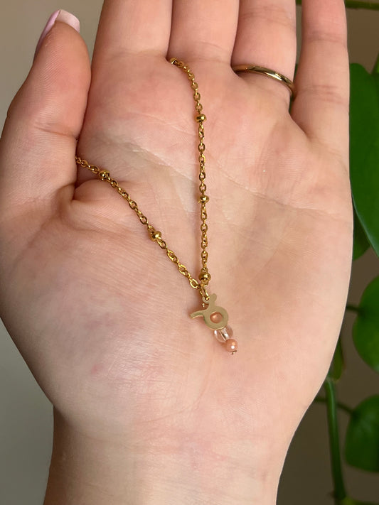 Taurus - Zodiac Sign Gemstone Gold Necklace