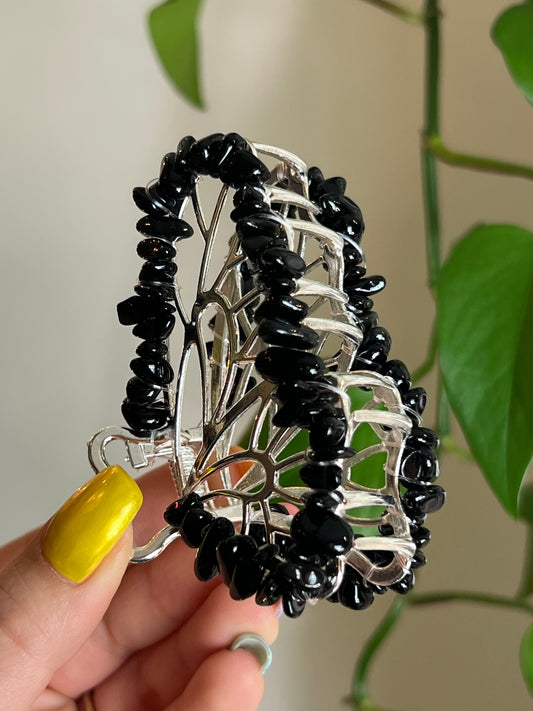 Black Obsidian Fairy Claw Clip - Silver