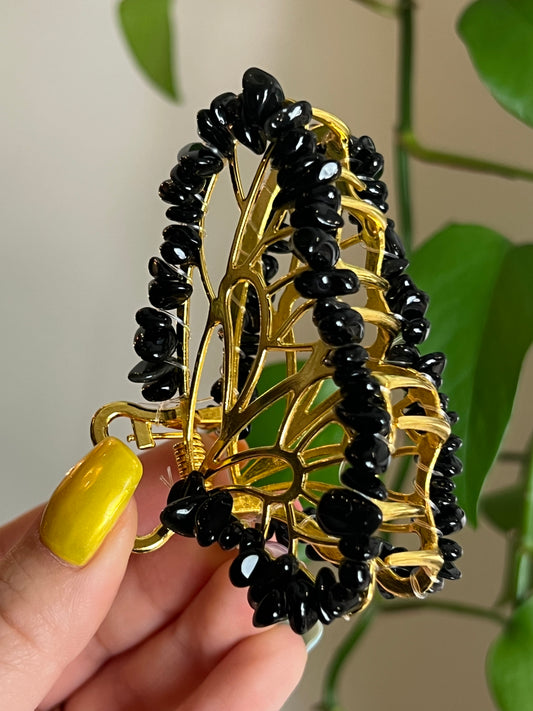 Black Obsidian Fairy Claw Clip - Gold