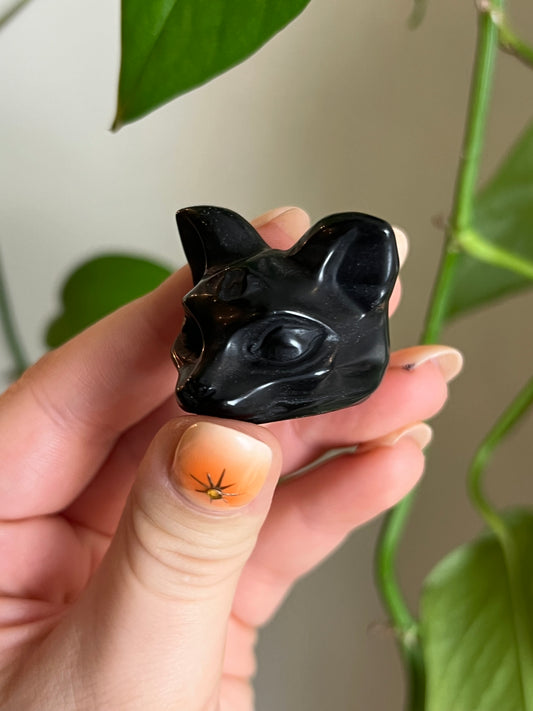 Black Obsidian Cat Head