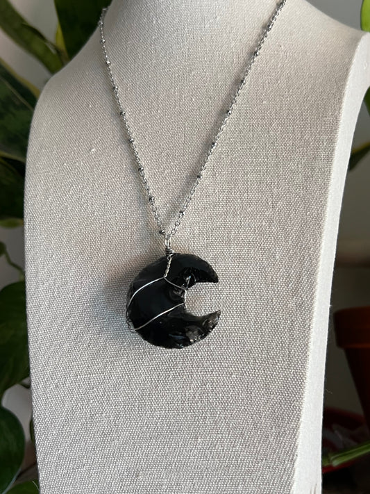 Black Obsidian Moon Necklace