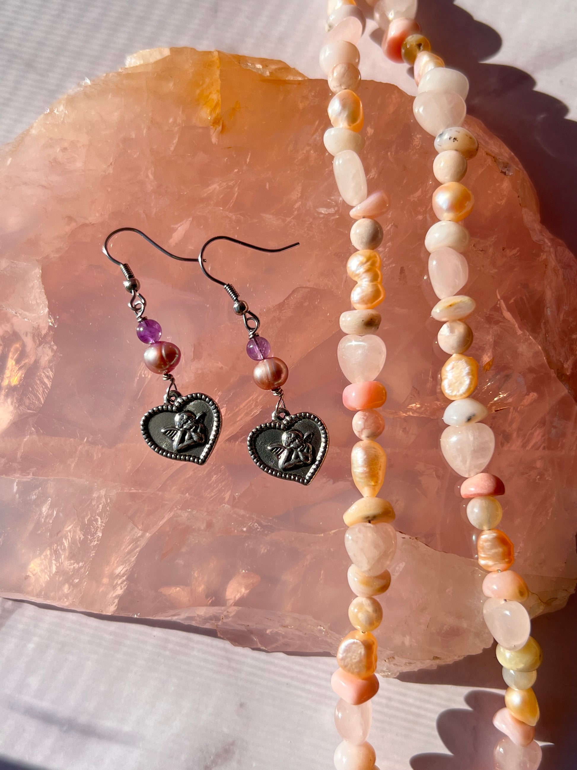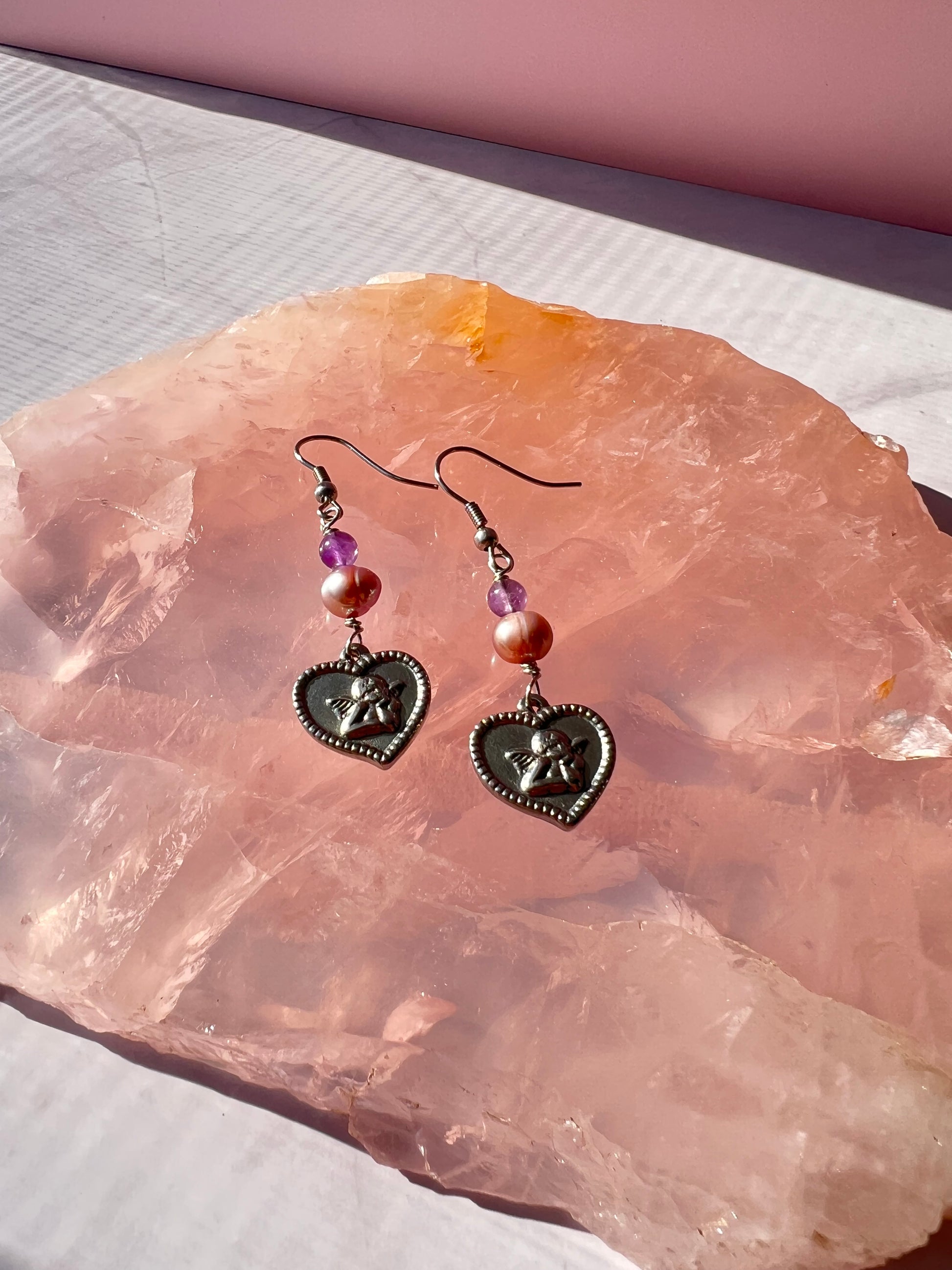 Lavender Pearl + Amethyst Cherub Earrings