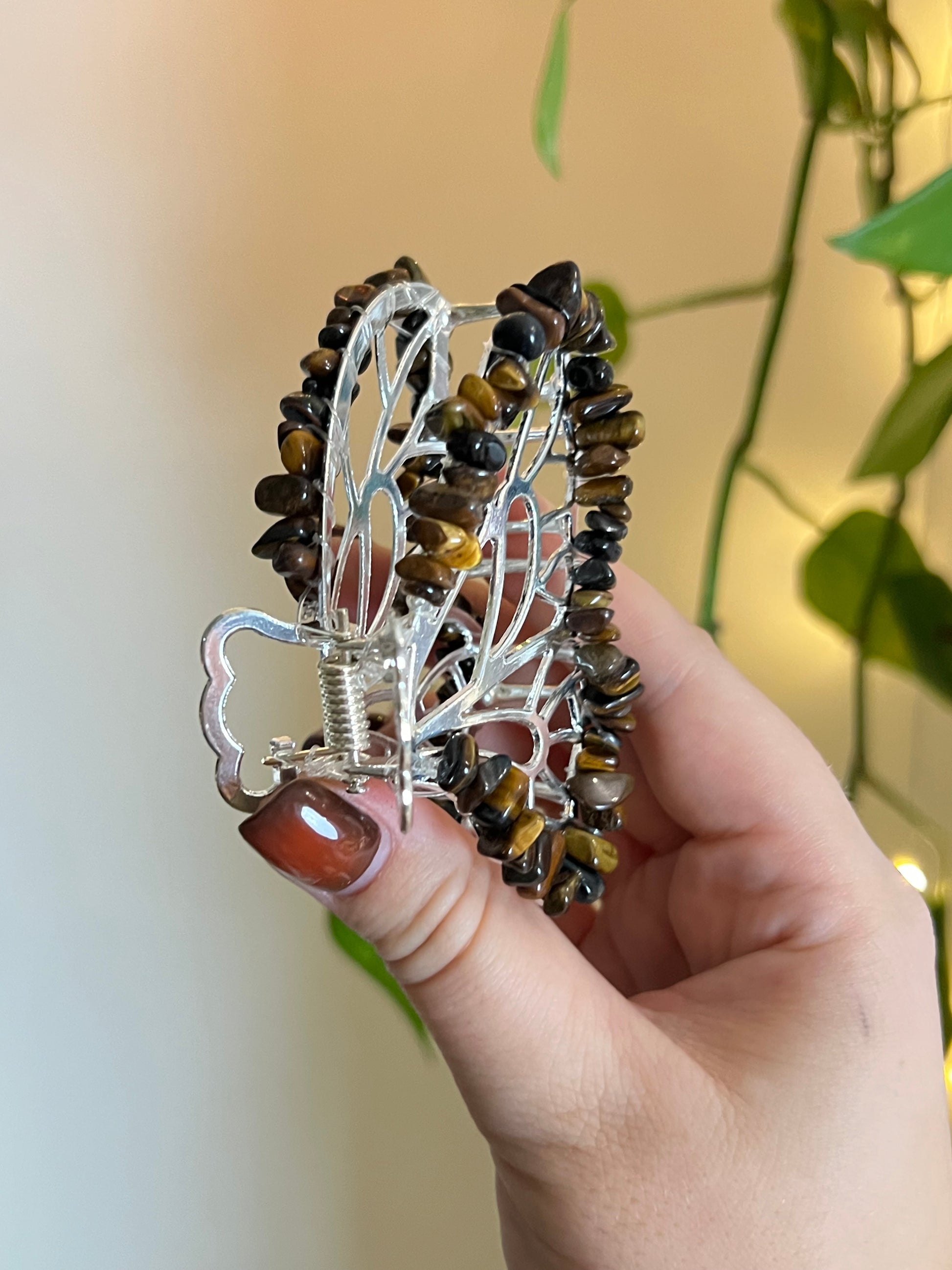 Tigers Eye Fairy Claw Clip - Silver