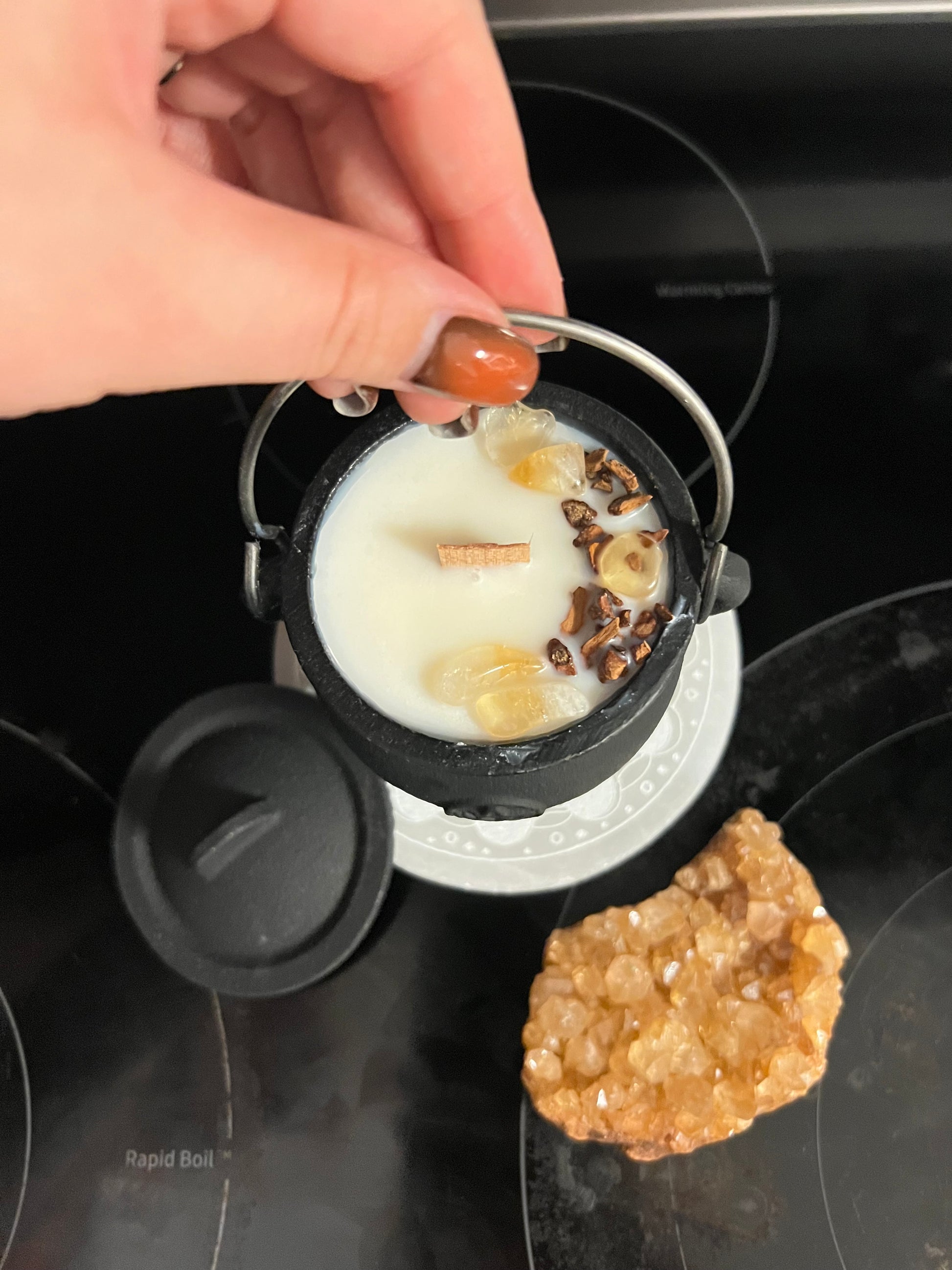 Made with real cast iron pots with lids so that you can burn incense and herbs when you're done burning your candle!