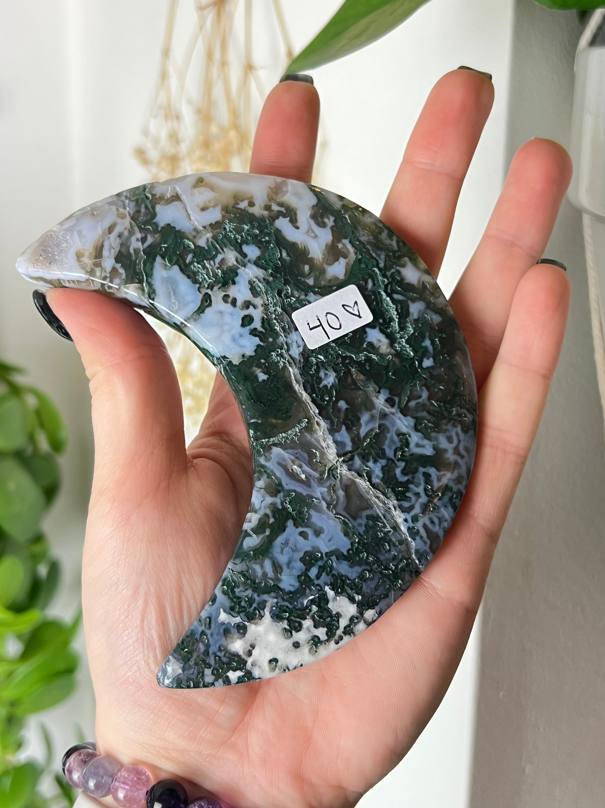 was broken and got glued back together! still super mossy + quartz druzy filled!