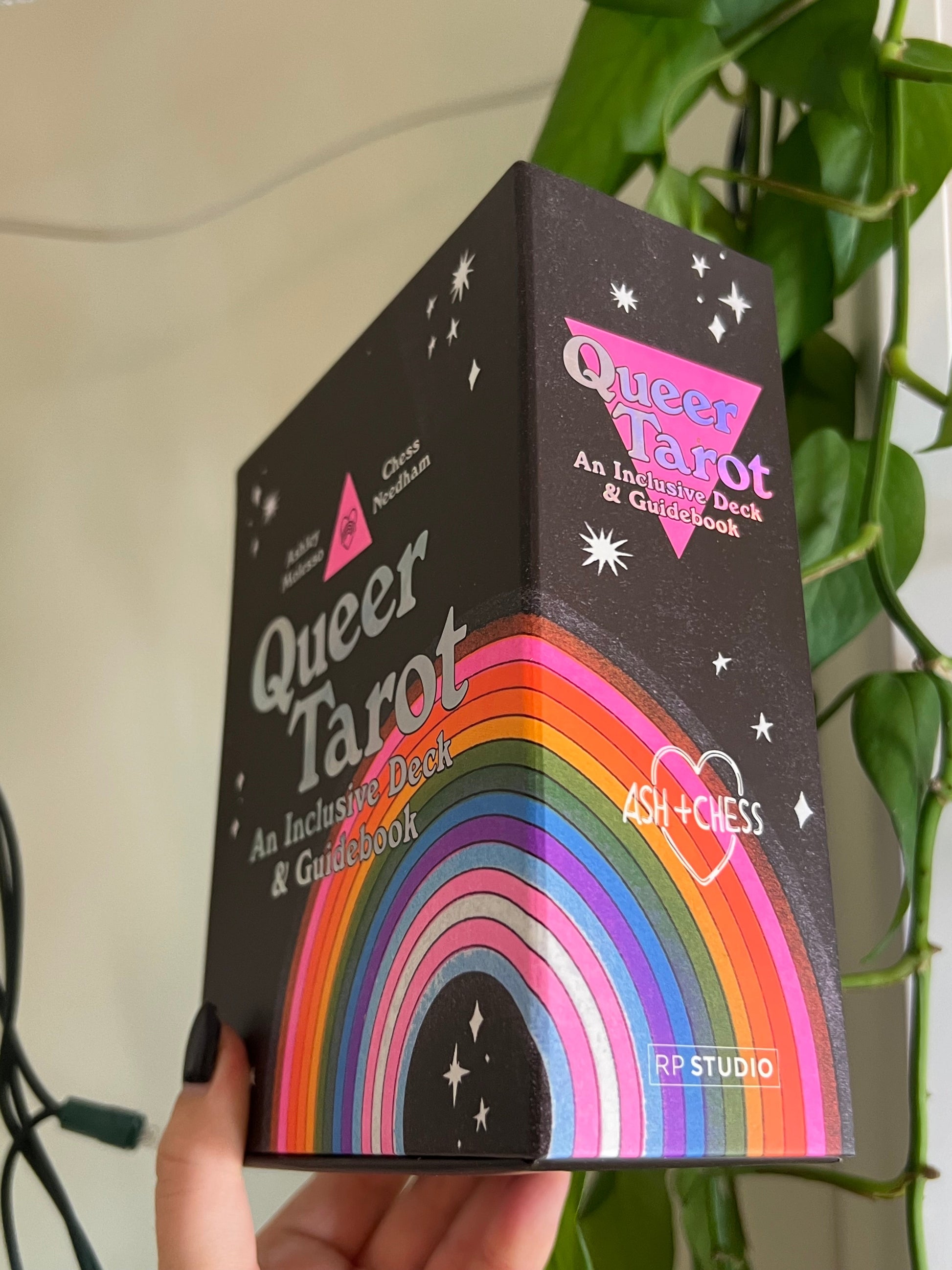 A vibrant, deluxe illustrated tarot deck and guidebook set, centering and celebrating LGBTQ+ identity, created by queer and trans artist team Ash + Chess.